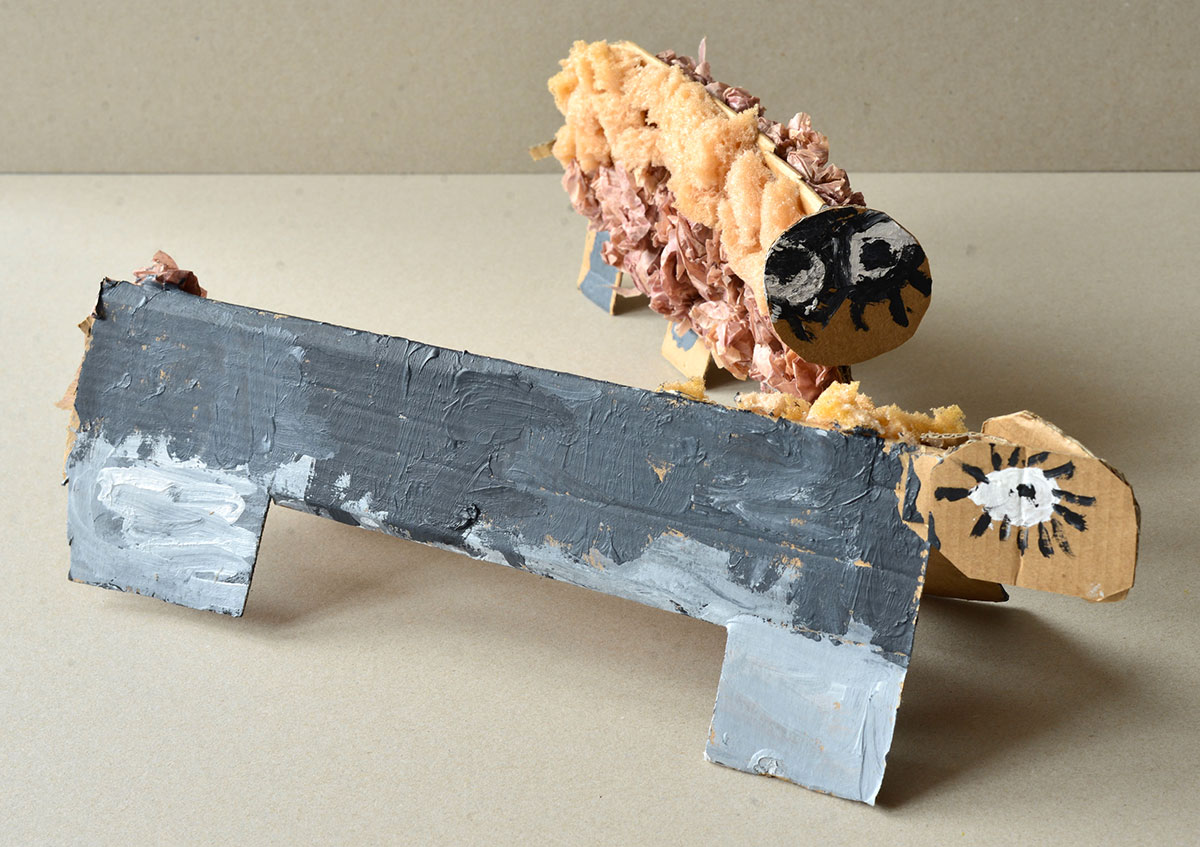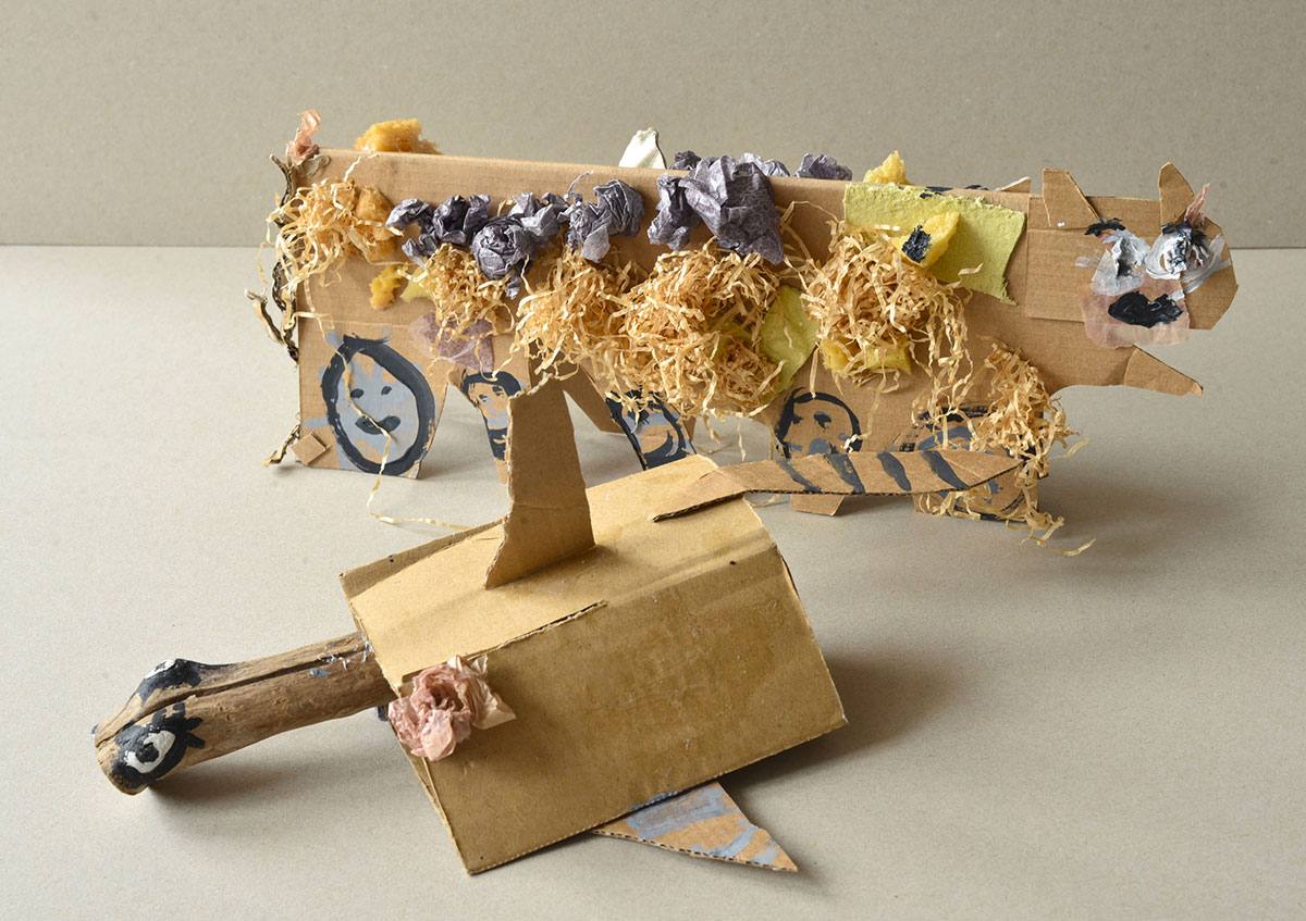 Tecnica: cartone da scatole, materiali di recupero, acrilici